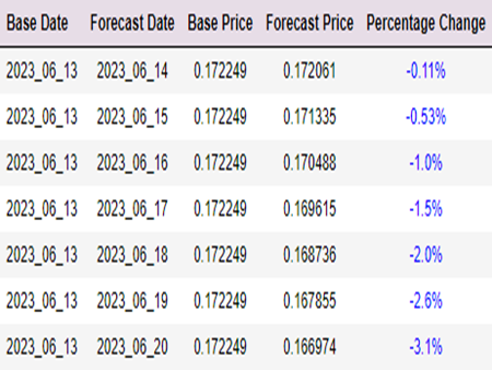 Explanation: Forecsted 7 days price and percentage change.